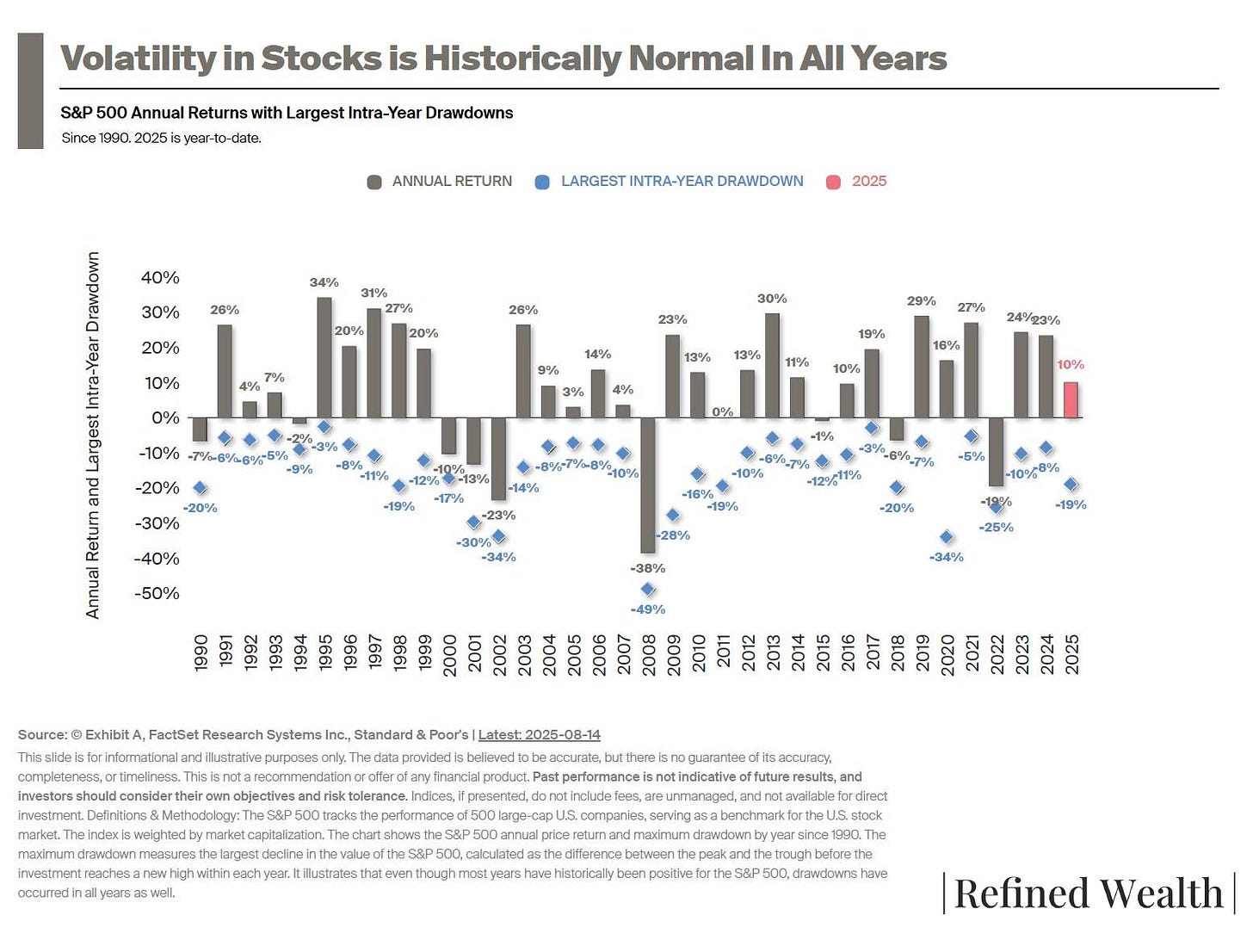 Most years include intra-year drawdowns, and every few years the market ends in negative territory. Opportunities to make mistakes.