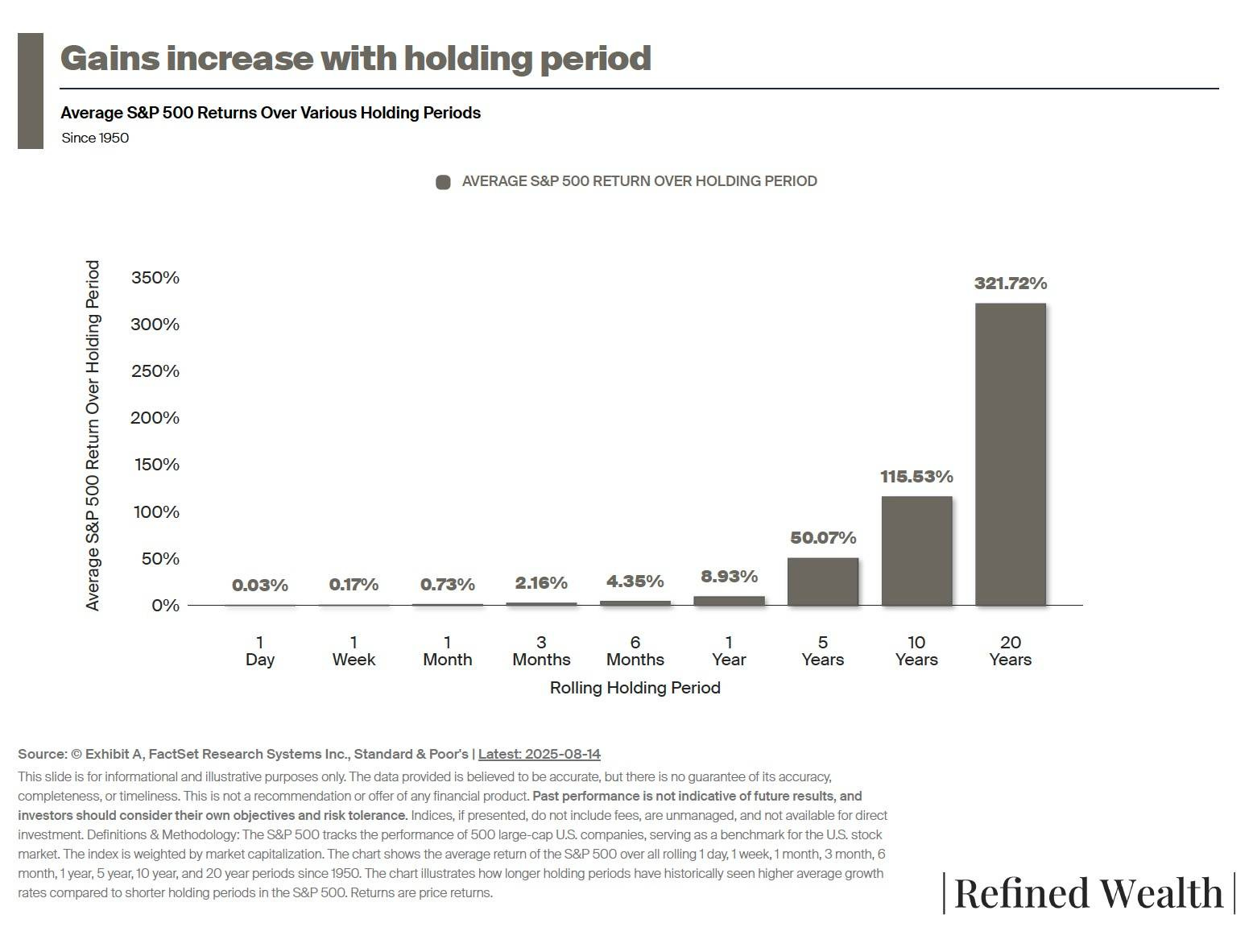 First, understand the S&P 500 represents 50% of the global market. It’s very important but not the entire market. Our goal is to capture its returns, not beat them through market timing.